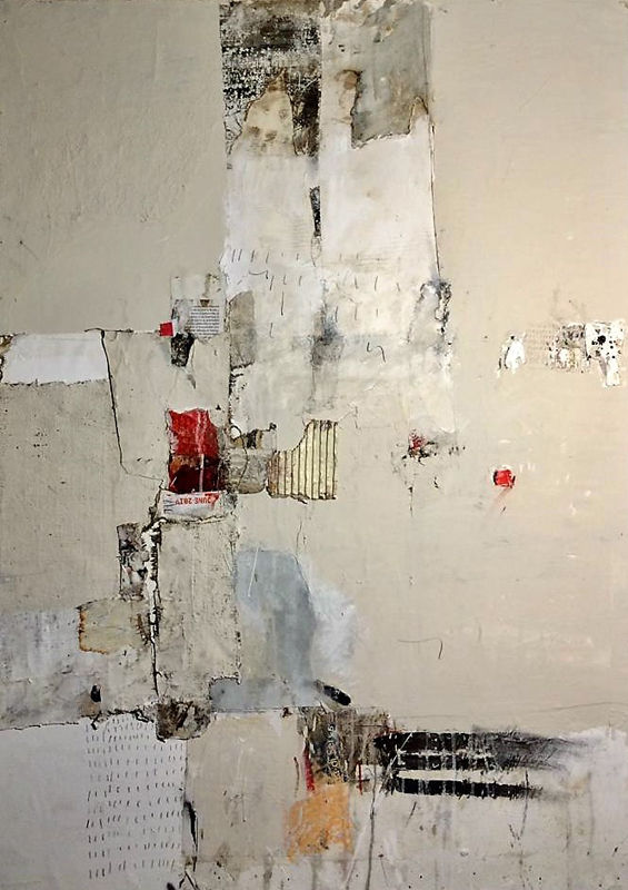 La sovrapposizione di sfumature, cancellazioni, diluizioni cromatiche dà vita a una continua ricerca di finezze: accostamenti sottili di grigi, bianchi e neri da cui affiora un’atmosfera debolmente colorata. Improvvise sequenze di rettangoli intensamente colorati accendono il dipinto con una pulsazione vitale, su un fondo arcaico sbiadito dal tempo.